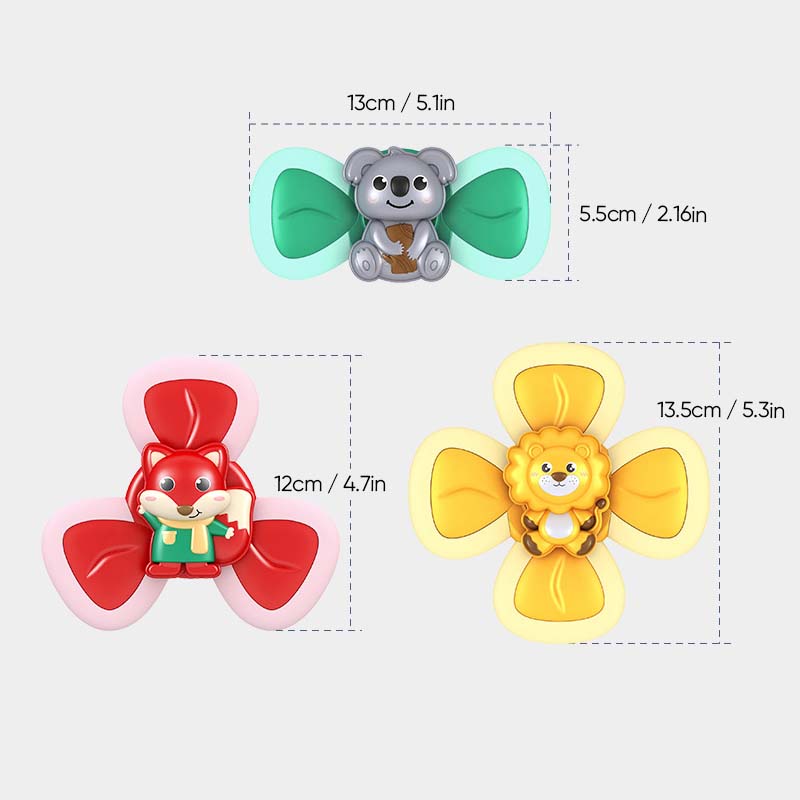 Saugnäpfe können auf jeder glatten Oberfläche befestigt werden. Beim Baden oder Essen dreht sich die Tierfamilie ständig, um die Aufmerksamkeit Ihres Kindes auf sich zu ziehen, und Ihr Baby wird jedes Mal Spaß haben. Ob drinnen oder draußen, die rotierende Gruppe wird eine lustige Zeit mit Ihrem Baby verbringen.