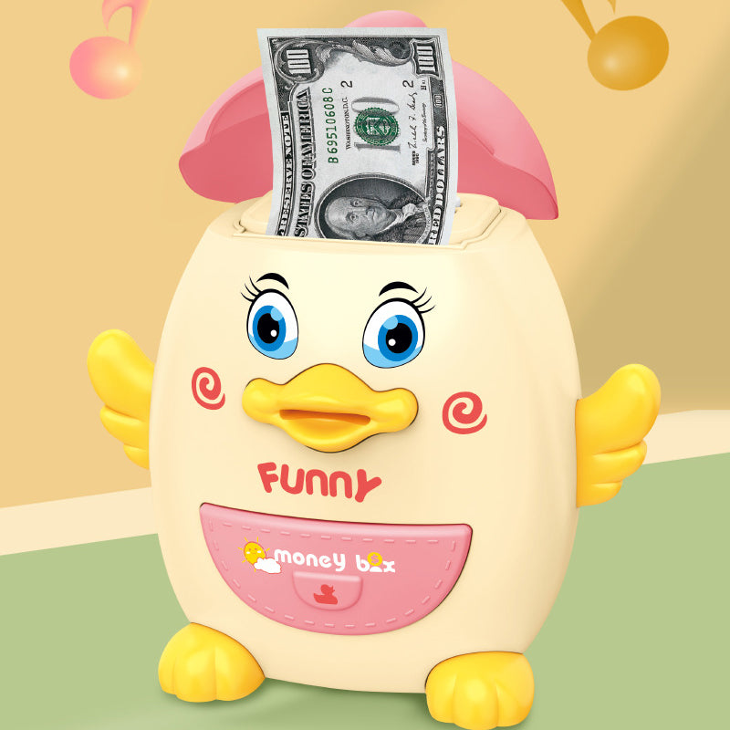 Automatisches Rollen von Geld: Legen Sie Banknoten auf die Rolle, es kann automatisch in das Sparschwein gerollt werden. (Aber bitte beachten Sie, dass es nicht funktioniert, wenn das Papier zu alt oder zu weich ist).
