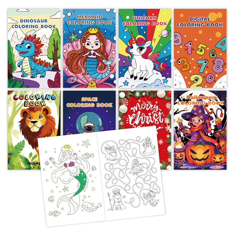 Bilder in mehreren Stilen zur Auswahl: Das Set enthält 8 Malbücher mit jeweils 12 Seiten, darunter Einhorn, Dinosaurier, Meerjungfrau, Tier, Astronaut, Weihnachten, Halloween, digitale Party. Sie haben genügend Auswahl und können Formen auswählen, die Sie gerne malen.
