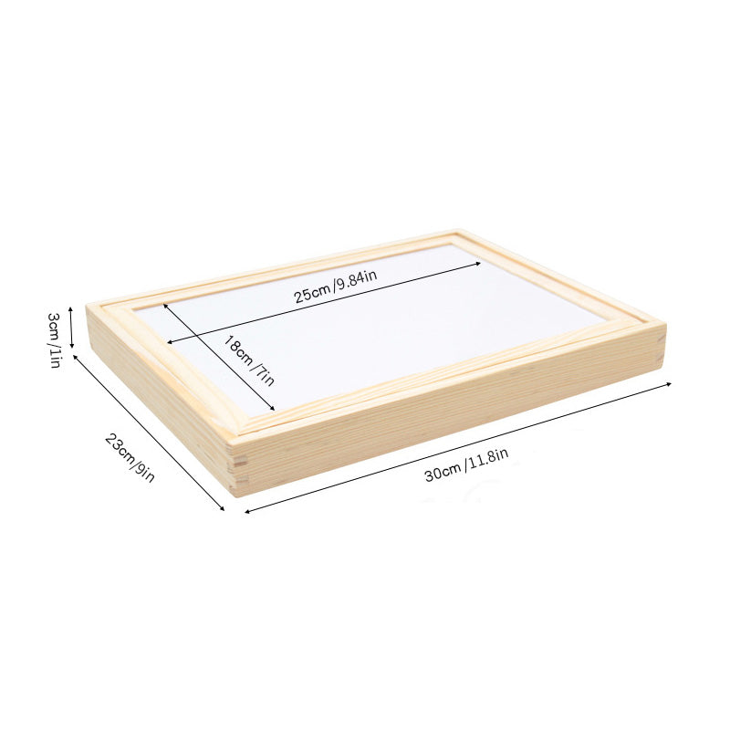 Einschließlich eines trocken abwischbaren Markers mit einem Radiergummi an der Endkappe, einem dreiteiligen Kreideset, einem Radiergummi für die Kreide und einem Ideenheft zum Anordnen der Formen