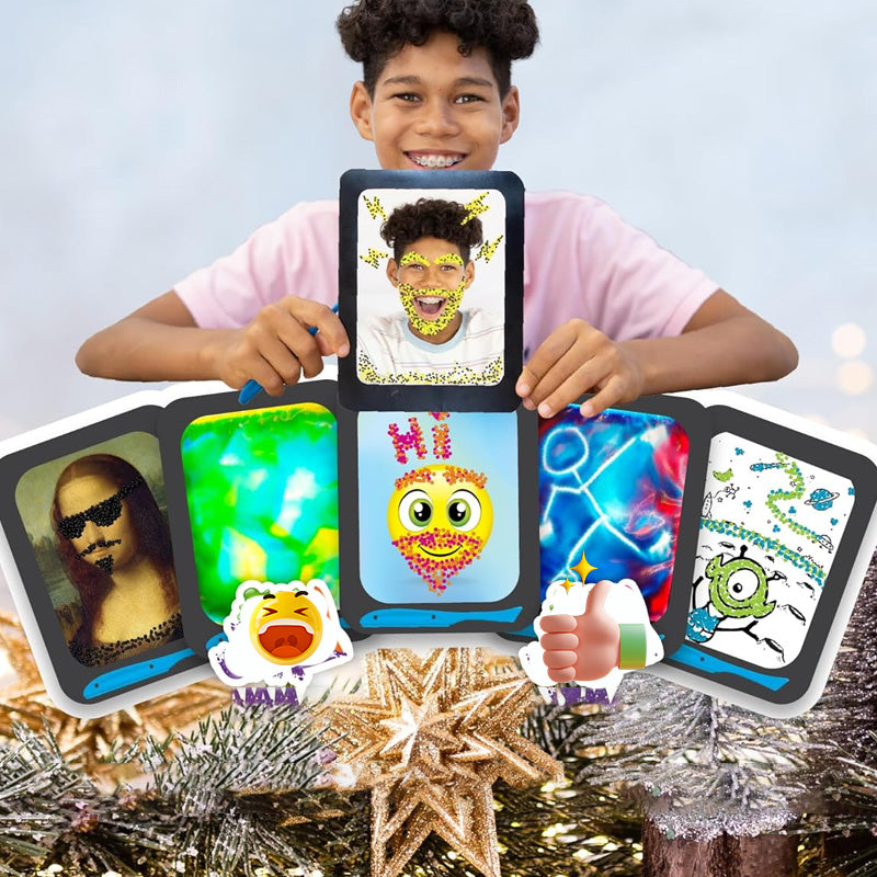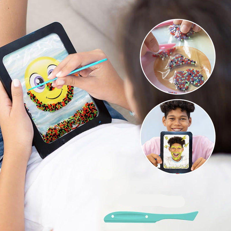 • NUTZE DEINE FANTASIE: Du kannst dein Design anpassen, indem du die abnehmbare Rückwandkarte auswechselst. So kannst du deine Perlen über Emojis, Landschaften oder sogar Selfie-Fotos gestalten!