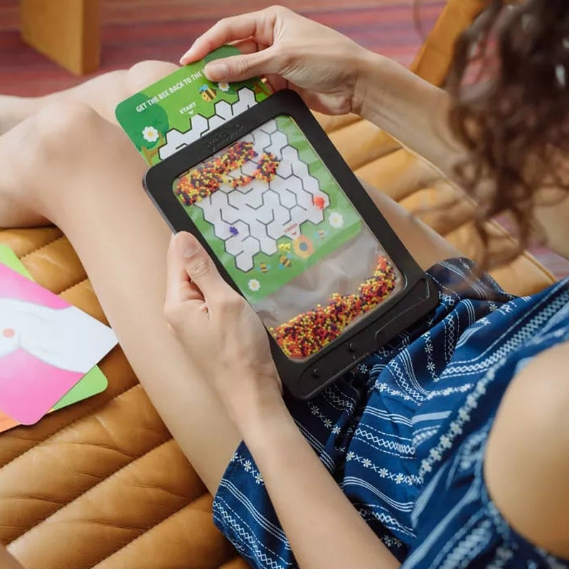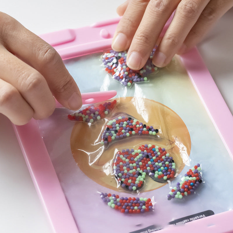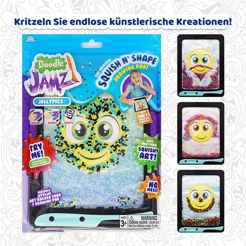 • Sie sind mit transparentem Gel und farbigen Perlen gefüllte "Squish n' Shape"-Malblöcke, mit denen man jedes beliebige Bild modellieren, formen und gestalten kann!
