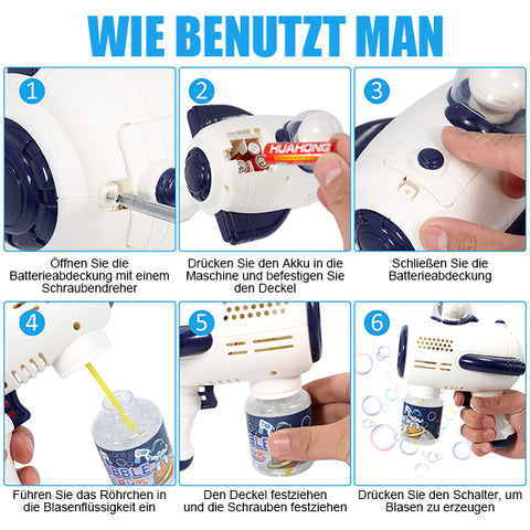 • Coole LED-Lichter und individuelles Astronauten-Thema: Die Blasenspielzeuge verfügen über leuchtende LED-Lichter, die im Dunkeln leuchten können. Bringt jede Menge Spaß in den Seifenblasen-Spieleabend für Kinder. Astronautenaufkleber und eine Seifenblasenpistole in Form eines Raumschiffs können die Aufmerksamkeit von Kindern stärker auf sich ziehen.