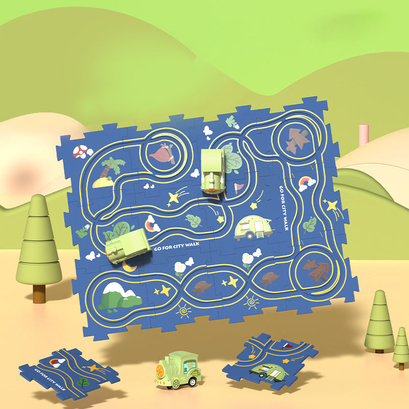 Lustige Puzzlespiele: Dieses Kinderpuzzle-Set enthält 12 Puzzleteile, 1 Auto und benötigt 1 AAA-Batterie (nicht im Lieferumfang enthalten), die Kinder dazu anregen kann, innovativ zu sein und einzigartige Streckenlayouts zu erstellen.