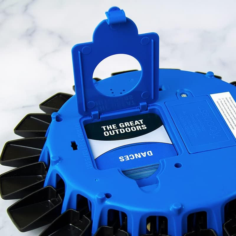 • Nehmen Sie eine Kategoriekarte vom Stapel und wählen Sie eine Kategorie für die Runde. Um eine Runde zu starten, geben Sie die Kategorie bekannt und tippen Sie auf die Timer-Schaltfläche in der Mitte des TAPPLE-Rads. Wenn Sie an der Reihe sind, haben Sie 10 Sekunden Zeit, um eine Antwort für die Kategorie zu nennen, die mit einem verfügbaren Buchstaben auf dem TAPPLE-Rad beginnt.