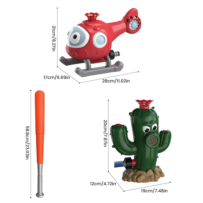 • 2 IN 1 SPRINKLER FÜR KINDER - Dieses Sprinklerspielzeugset enthält zwei Sprinklerköpfe. Der eine ist eine Wassersäulendüse, die mit dem beiliegenden Baseball kombiniert werden kann, um Baseball-Schlagfertigkeiten zu trainieren; der andere ist eine um 360° drehbare Düse mit einem großen Sprühbereich, mit dem Kinder im heißen Sommer fröhlich im Wasser spielen können. Die Kombination der beiden Spiele ist erfrischend und bringt unendlichen Spaß in diesen Sommer.