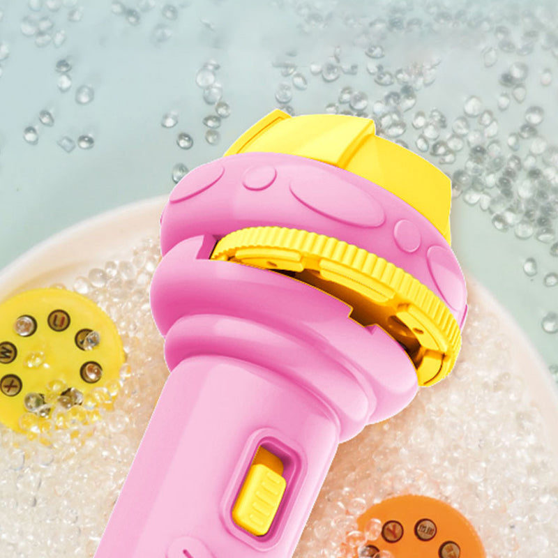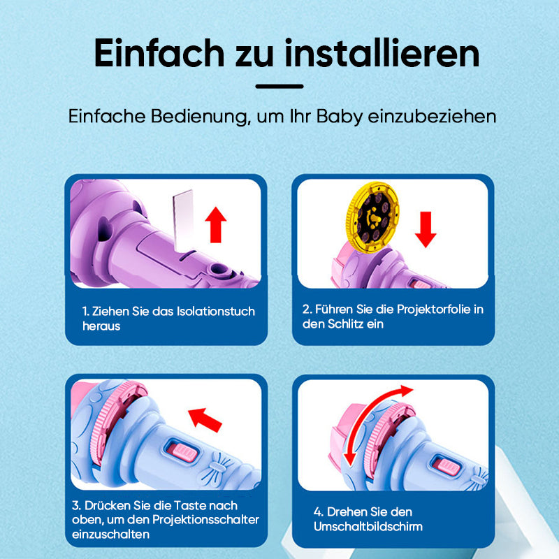 Sicheres und hochwertiges Material: Hergestellt aus hochwertigem, umweltfreundlichem ABS-Material mit glatten Kanten, die die kleinen Kinderhände nicht verletzen. Einfach zu bedienen. Schieben Sie einfach die Kunststoffabdeckung, um das Dia zu wechseln. Legen Sie dann die ausgewählte Disc ein, drehen Sie die Disc oder stellen Sie sie ein und beobachten Sie das projizierte Bild. Leicht und praktisch. Kann als Taschenlampe verwendet werden, damit sich die Kinder nachts sicher fühlen.
