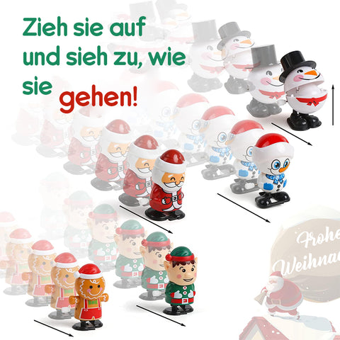 Perfektes Weihnachtsgeschenk: Diese farbenfrohen und cleveren Aufziehspielzeuge mit Weihnachtsmotiv werden Ihre Weihnachtsfeier mit Sicherheit zum Strahlen bringen. Perfekt für Weihnachtsgeschenke, Partygeschenke, Geschenktütenfüller, Belohnungen für Kostümpartys, Karnevalspreise, Schatzkistenspielzeug, Geburtstagsgeschenke, Studentenpreise, Pinata-Füller und Strumpfwaren.