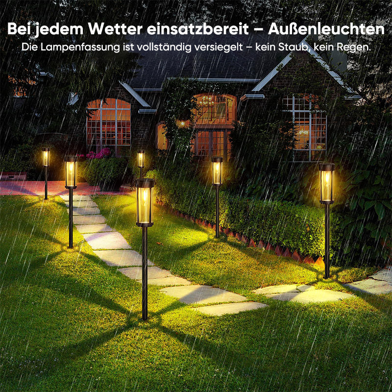 Wetterfeste Langlebigkeit: Dank ihrer IP67-Wasserfestigkeit sind diese Solar-Gartenleuchten für unterschiedlichste Wetterbedingungen ausgelegt. Sie gewährleisten eine langanhaltende Leistung, selbst an regnerischen oder verschneiten Tagen, und eignen sich somit ideal für den Einsatz im Freien in verschiedensten Klimazonen.