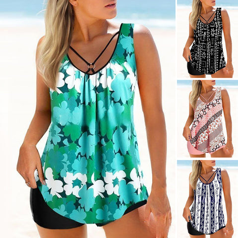 Ein bedrucktes Tanktop und einfarbige Shorts geben Ihnen das Selbstvertrauen, nach draußen zu gehen, ideal für Volleyball und Schwimmen, konservativ, aber immer noch in Form.