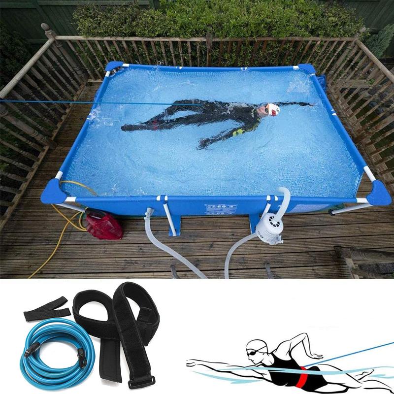 Das Schwimmtrainingsgerät mit elastischer Traktion verwendet sehr elastische Materialien, und der Schwimmer nutzt die Elastizität und den Widerstand des elastischen Seils zum Trainieren.