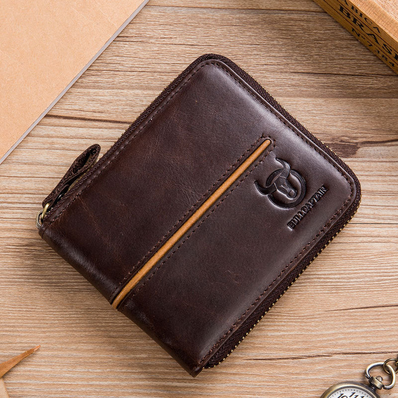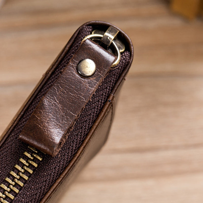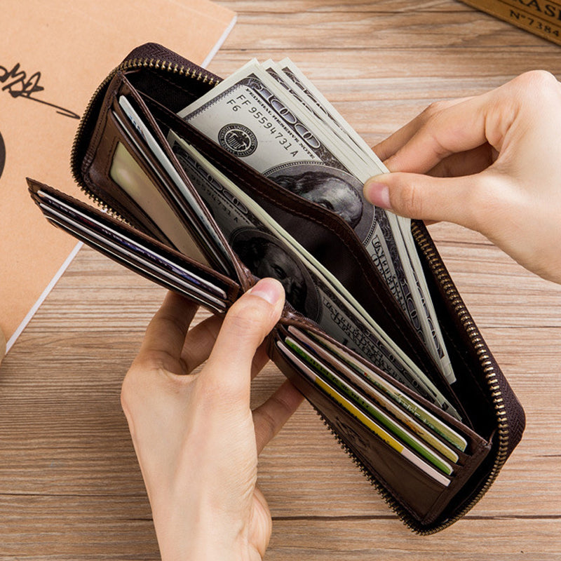 PU-Leder: Die Brieftasche besteht aus hochwertigem PU-Leder, kombiniert mit glattem Polyester-Innenfutter und Alu-Reißverschluss, was unsere Lederbrieftasche für Herren elegant und langlebig macht.