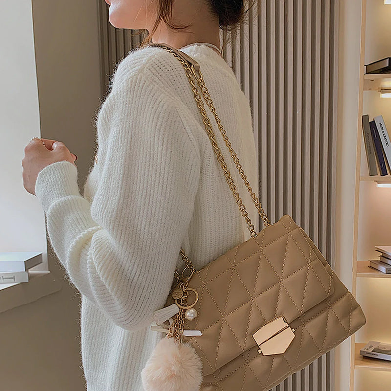 Klassisches Design: Klassisches und stilvolles geometrisches Stichdesign, zusammen mit einem hochwertigen und speziellen Hardware-Ketten-Schultergurt, ist verschleißfest und bricht nicht leicht. Prägnante klassische Textur und der Magnetverschluss, die Sie attraktiver, stilvoller, schöner und edler machen. Der doppelte Schutz der Magnetschnalle und des Reißverschlusses kann Ihre persönlichen Gegenstände sicherer halten.