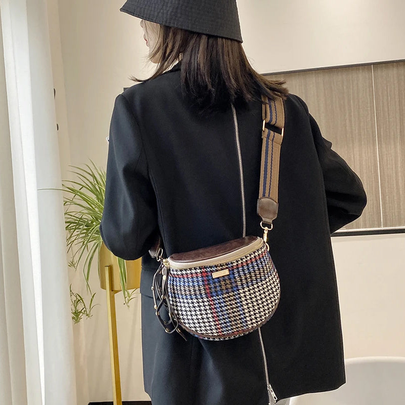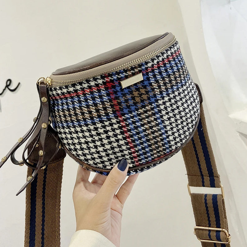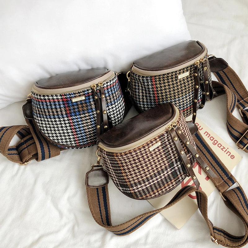 Damen Karierte Umhängetasche mit breiten Trägern