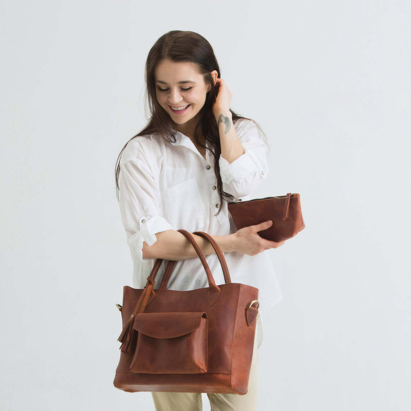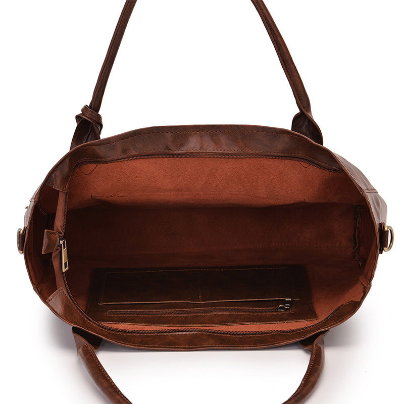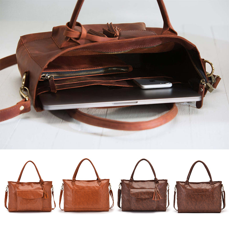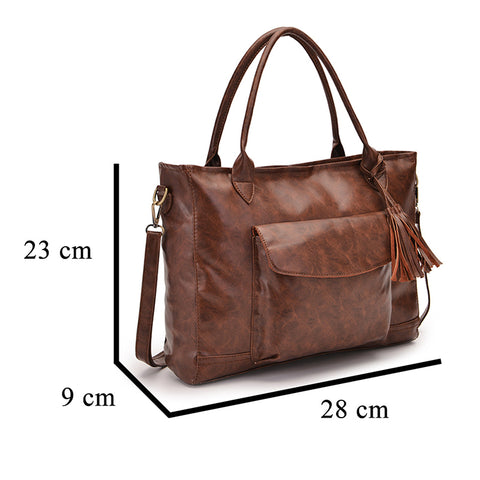 Damen Multifunktionshandtasche Gepäcktasche aus Ölwachsleder mit großem Fassungsvermögen