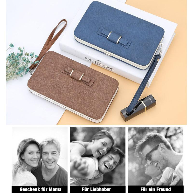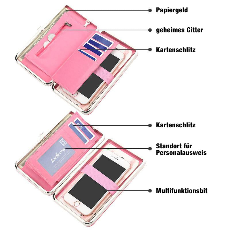 Die Geldbörse hat einen abnehmbaren Riemen.