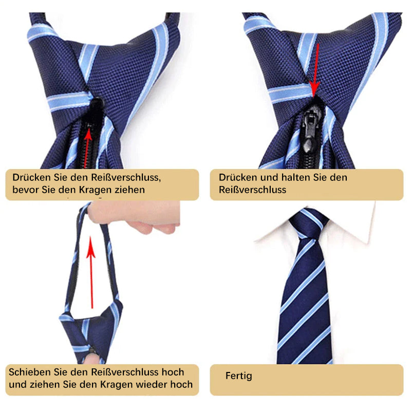 - Einfach zu verwenden: Im Gegensatz zu herkömmlichen Krawatten sind unsere Krawatten mit Reißverschluss sehr praktisch. Der Reißverschlussbereich ist vollständig unter der Krawatte verborgen, sodass nicht zu erkennen ist, ob es sich tatsächlich um eine Vorbindung handelt.