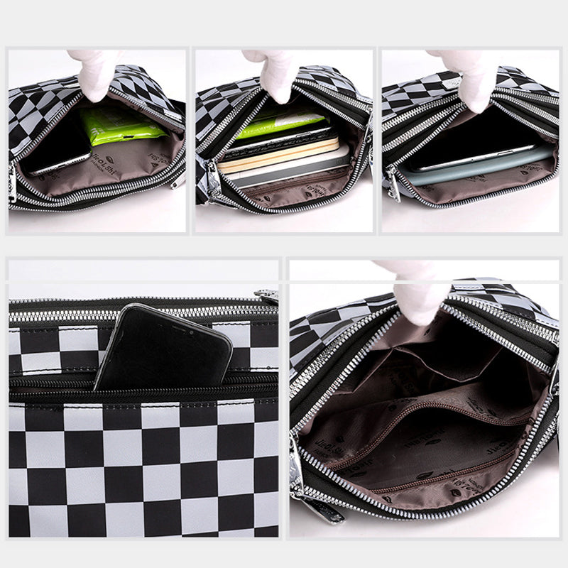 Exquisite vielseitige modische wasserdichte karierte Umhängetasche aus Nylon