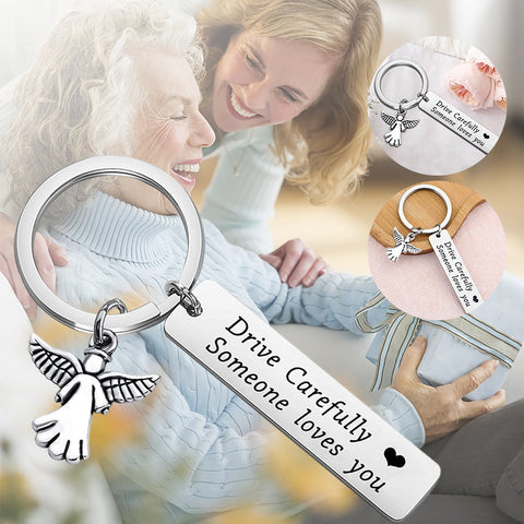 ❥ GESCHENKIDEEN FÜR FAHRSICHERHEIT ❥ Fahren Sie vorsichtige Schlüsselanhängergeschenke für Ihren Fahrerfreund/besten Freund; Geschenke für Teenager-Fahrer für einen besonderen Tag, Geburtstagsgeschenke für Tochter, Sohn, Vater; Süßer Schlüsselanhänger für den besonderen Tag eines Freundes