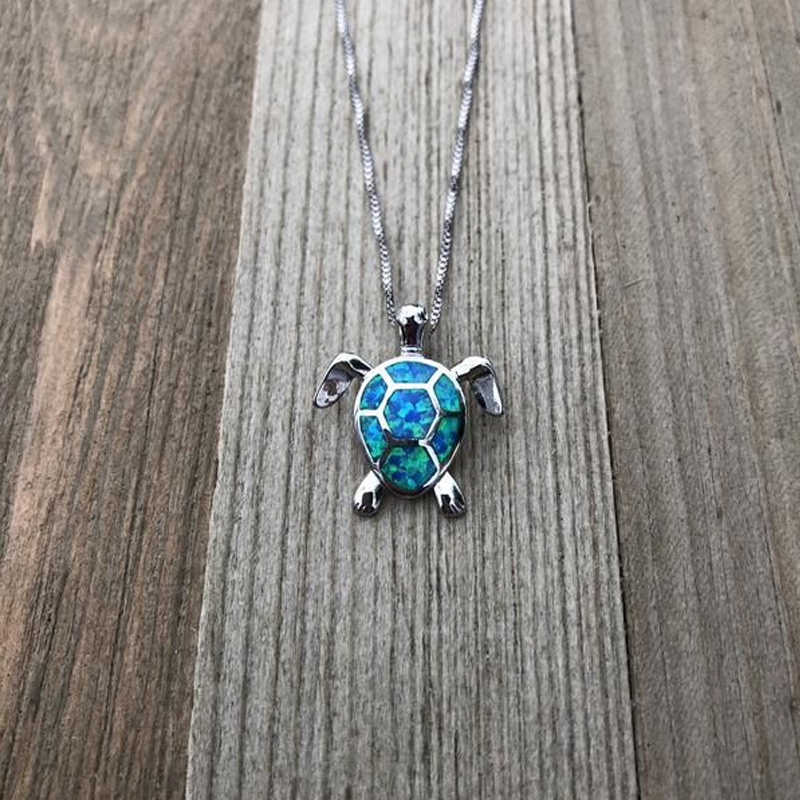 Diese Schildkrötenkette ist ein erstaunliches Kunstwerk: das charmanteste und vielseitigste Ornament. Diese Halskette ist handgefertigt aus 18 Karat Weißgold vergoldetem Messing und Opal.