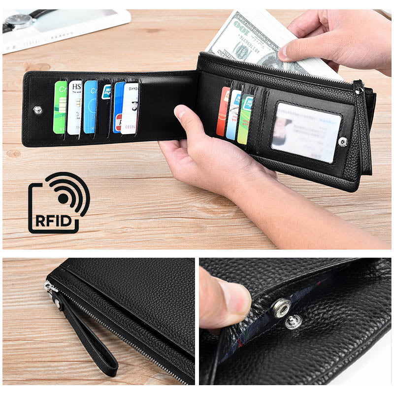 Herren Geldbörse mit Reißverschluss und RFID-Blockierung