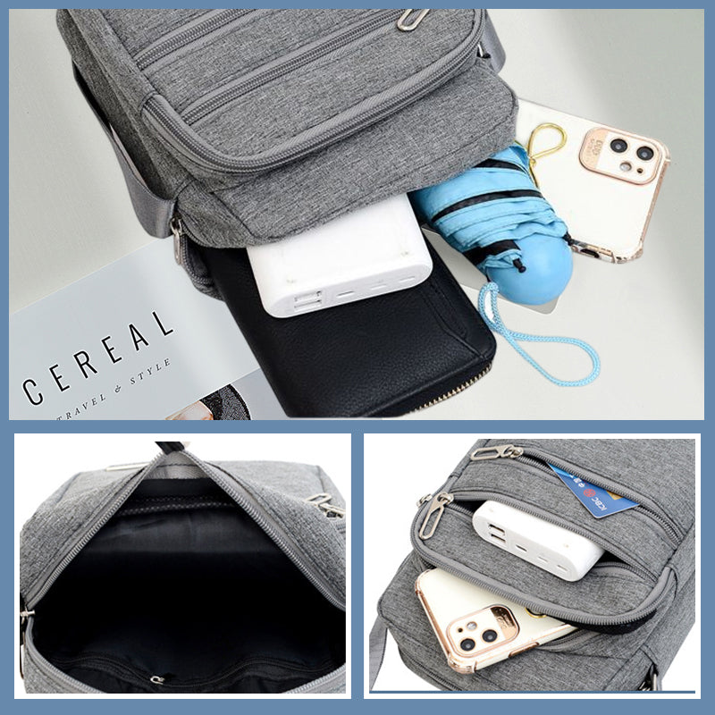 🤵♂️Kompakt und praktisch: Diese kleine, handliche Umhängetasche hat vier Fächer. Ein Rückenfach, in dem Sie Ihre persönlichen Gegenstände wie Pässe und Tickets sicherer aufbewahren können. In der Mitte können Geldbörse, Schlüssel, Handy, Powerbank, Brille im Hauptfach verstaut werden. In den zwei vorderen Fächern können Sie Zigaretten, Kaugummis und Kleingeld aufbewahren. Genug, um all Ihre täglichen oder Reiseutensilien zu verstauen.