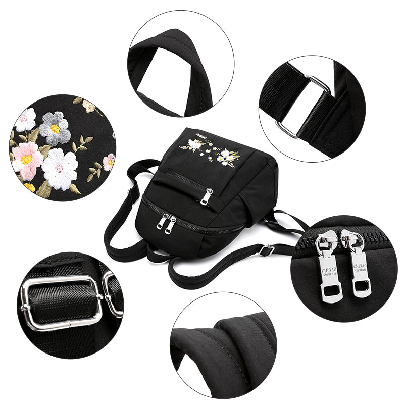 • Paket: 1 * Lässiger modischer bestickter Nylonrucksack für Damen