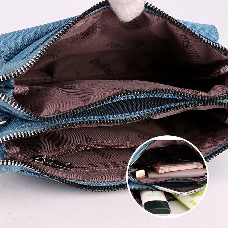 Die Tasche hat ein großes Fassungsvermögen und ein Design mit mehreren Taschen. Es ist praktisch, den täglichen Bedarf wie Sonnenbrille, Handy, Buskarte usw.