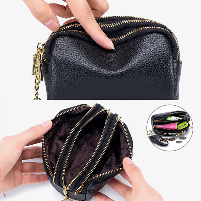 Paket: 1 * Mini Geldbörse mit Reißverschluss aus weichem Leder
