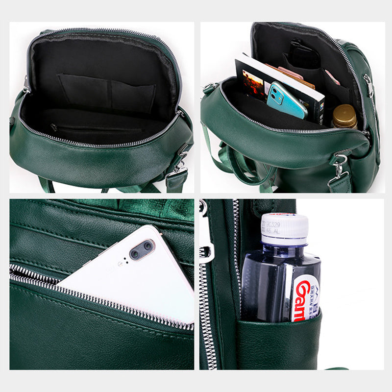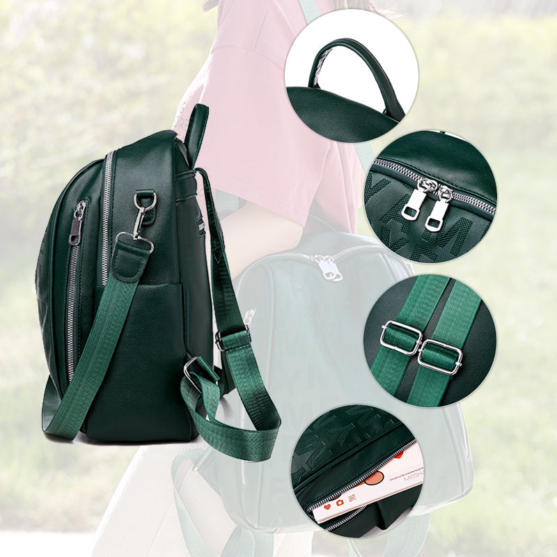 Der Rucksack besteht aus stylischem wasserdichtem PU-Material und vergoldetem Reißverschluss. Das Innenfutter besteht aus reißfestem Polyester, das dem täglichen Gebrauch standhält.