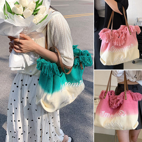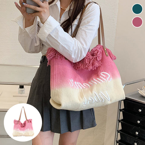 Paket: 1 x Quasten-Tragetasche mit Farbverlauf für Damen