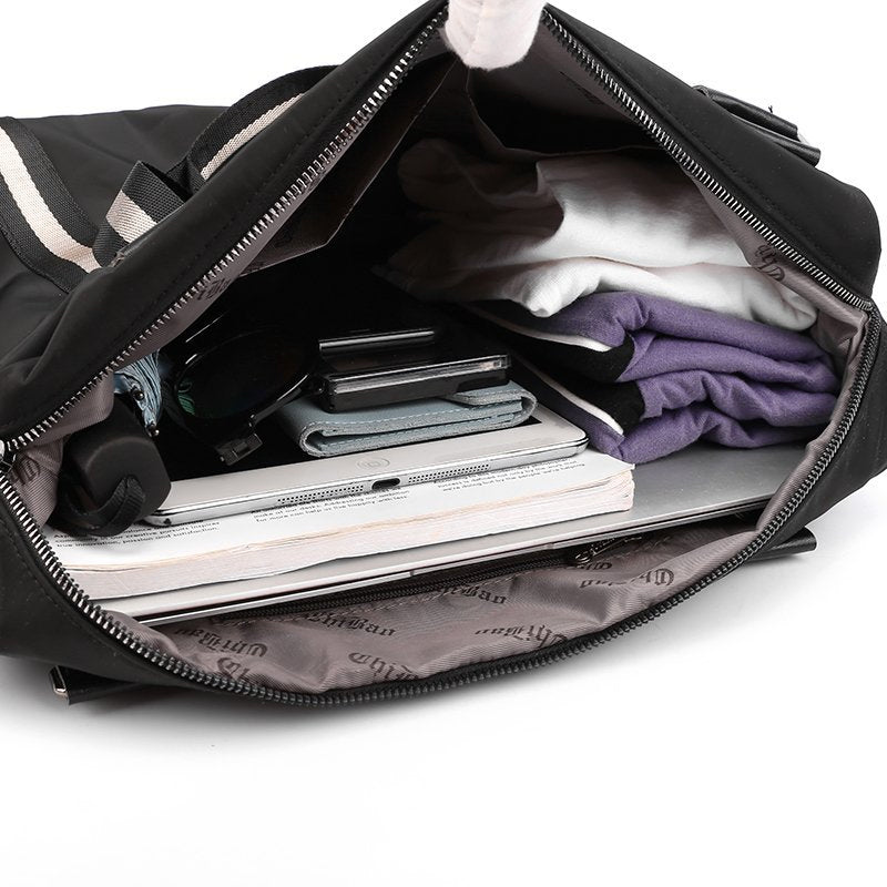 • Die Oberfläche der Tasche besteht aus wasserdichtem Gewebe, das verschleißfest und bequem ist.