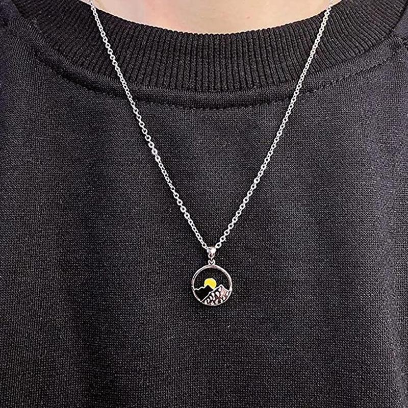 🌈Inspiriert von unserer Liebe zur Natur, wird Sie diese Bergkette an Ihren Lieblingsort erinnern. Schichten aus haltbaren Aluminiumbergen mit einer leuchtenden Sonne, die herausschaut. Diese Halskette ist perfekt für alle, die gerne Ski fahren, wandern, campen oder einfach nur die Natur genießen.💗