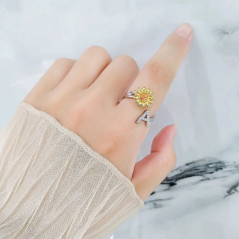 - 1 * Tochter/Enkelin verstellbarer Sonnenblumen-Alphabet-Ring