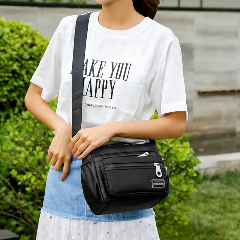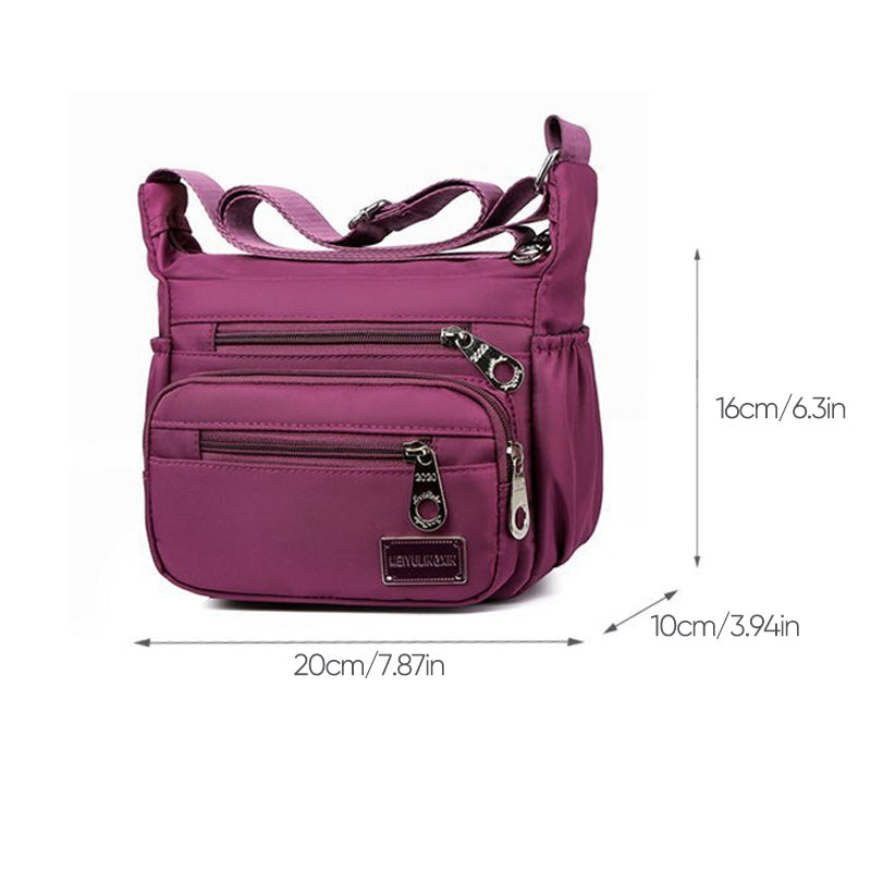 • Umhängetasche: Hergestellt aus leichtem, wasserabweisendem Nylon mit strapazierfähigen Reißverschlüssen