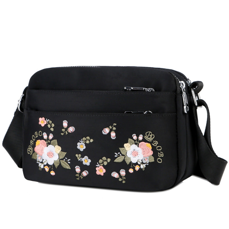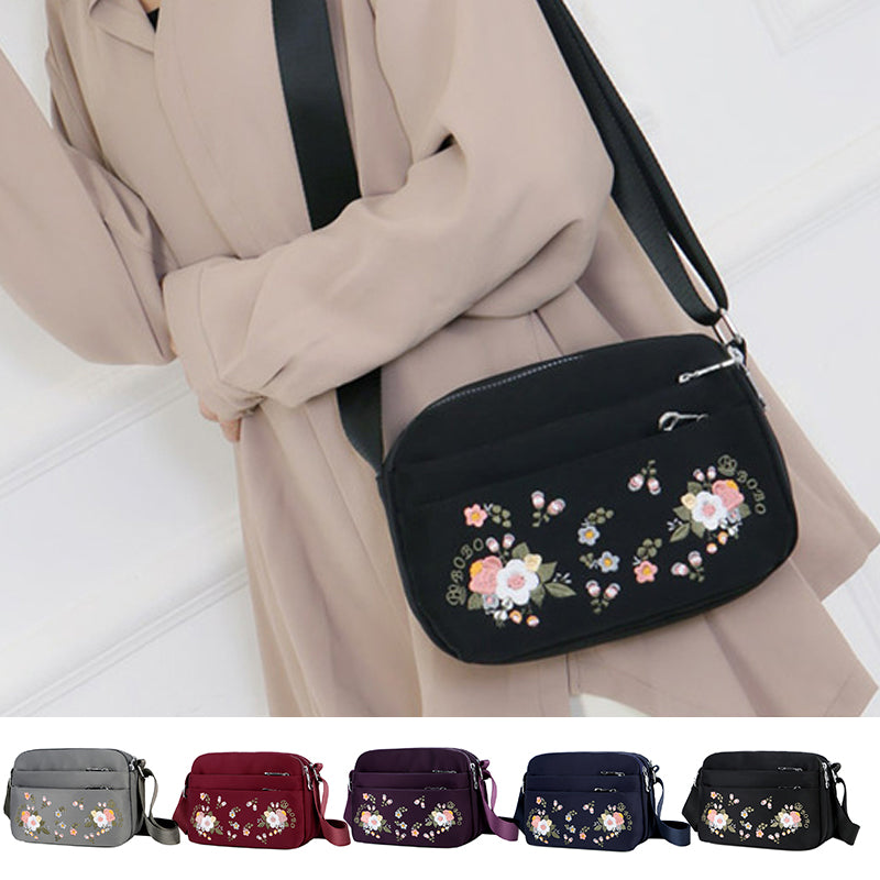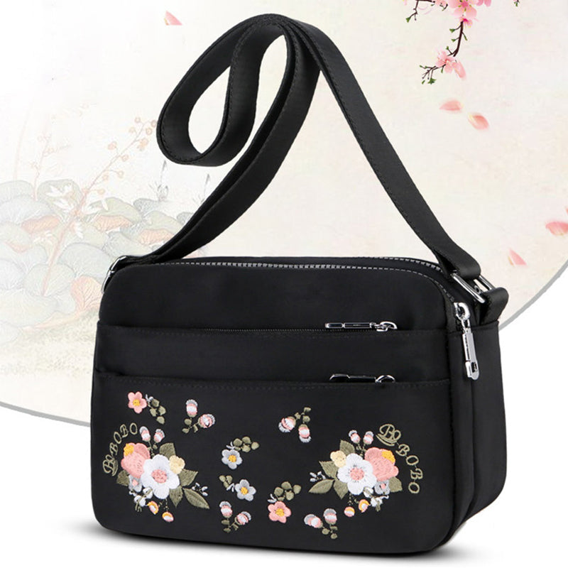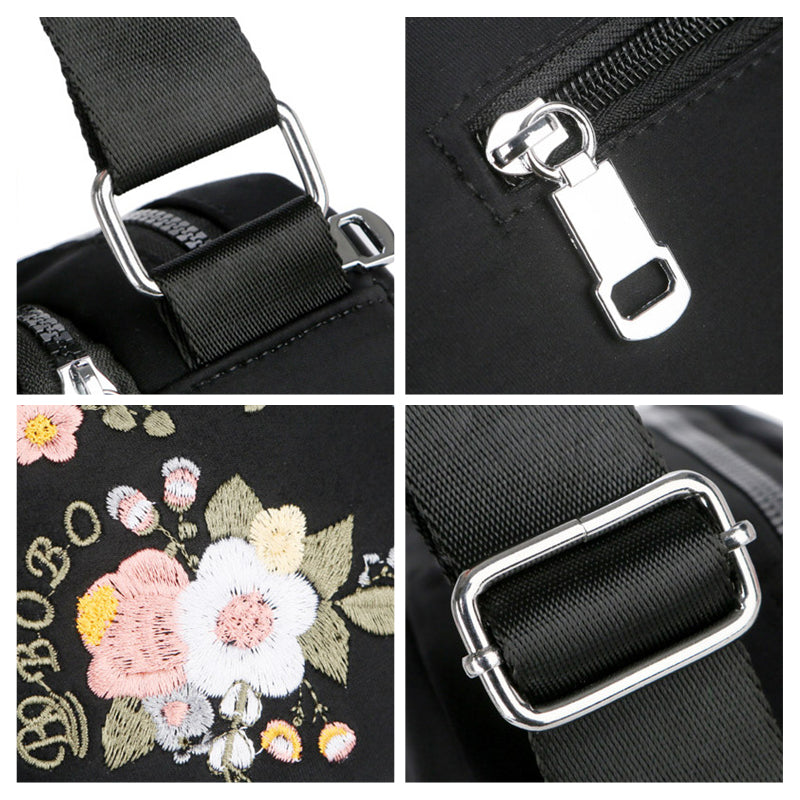 Material: Die Umhängetasche mit besticktem Blumenmuster ist aus praktischem, wasser- und schmutzabweisendem Nylongewebe für Strapazierfähigkeit, leichte, hochwertige Konstruktion und einfache Pflege.