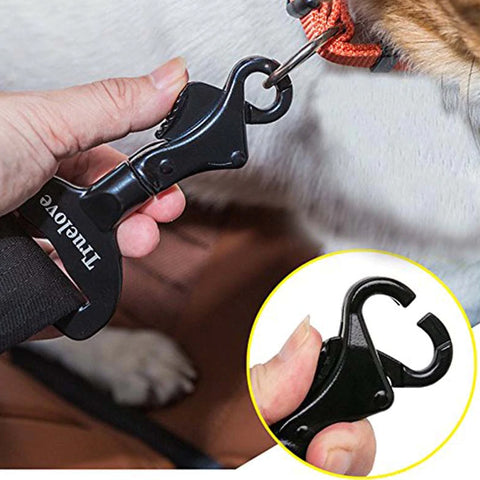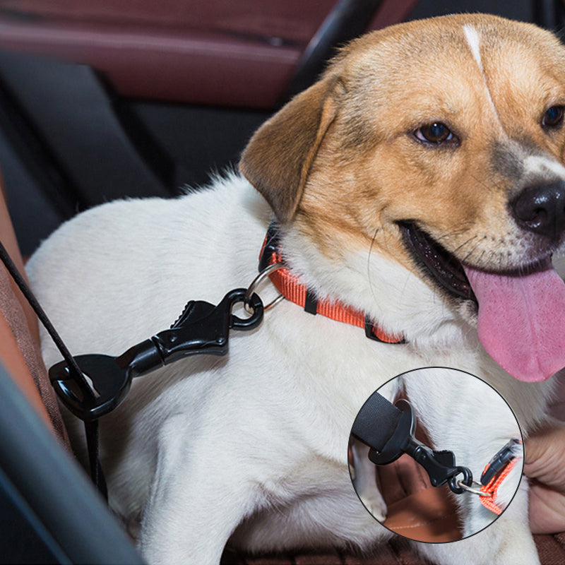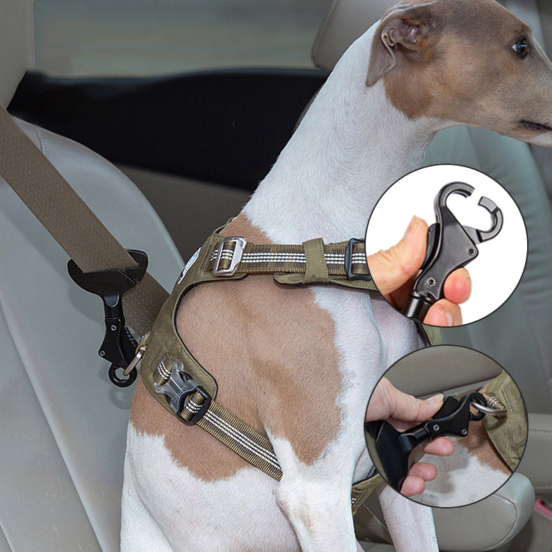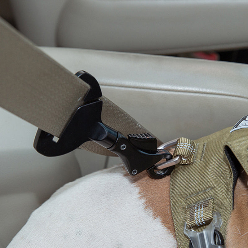 Der Metallclip lässt sich leicht am Sicherheitsgurt des Autos befestigen und wir empfehlen, ihn für besseren Halt über dem Halsband zu tragen.