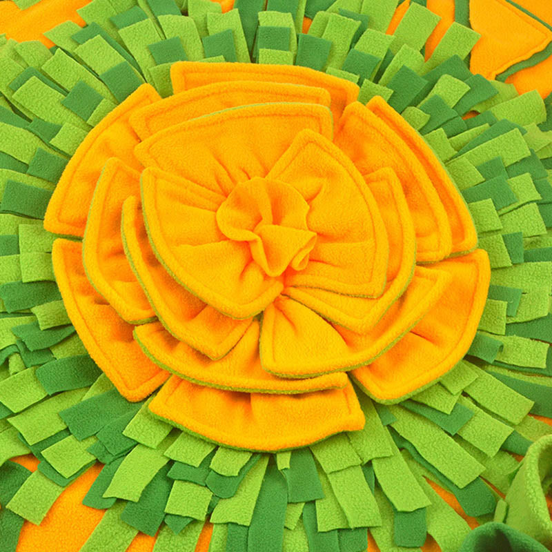 Anweisungen: Sie können die kleinen Snacks auf den Blütenblättern und im Gras verstecken und den Hund dann nach dem Geruch nach den Snacks suchen lassen.