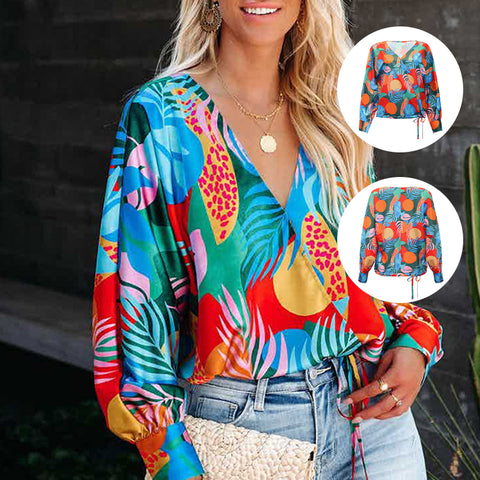 Paket: Bedrucktes Langärmliges Lockeres Freizeithemd mit V-Ausschnitt * 1