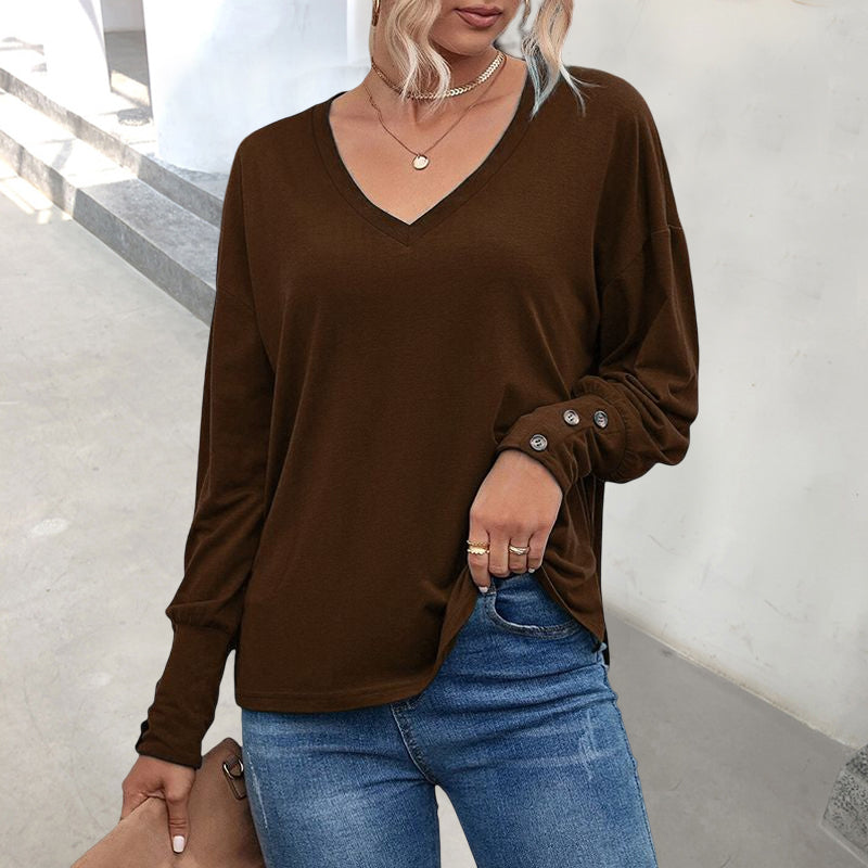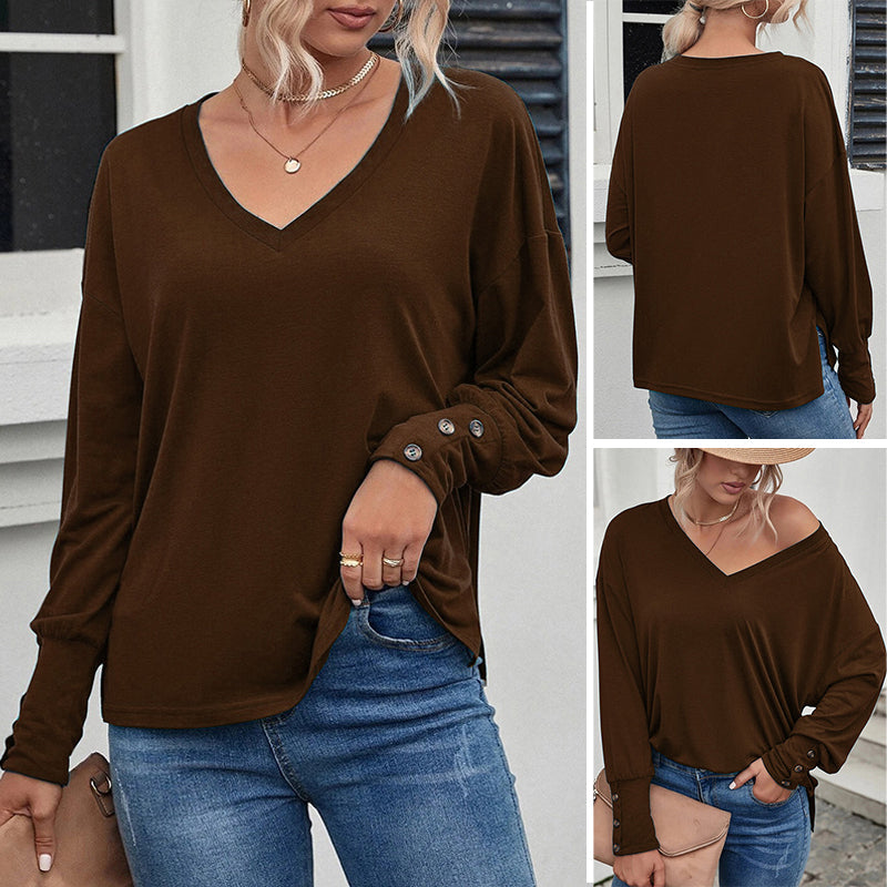 • Design: Lässige Damen-Tops mit V-Ausschnitt, Damen-Tops, niedliche Falten vorne.