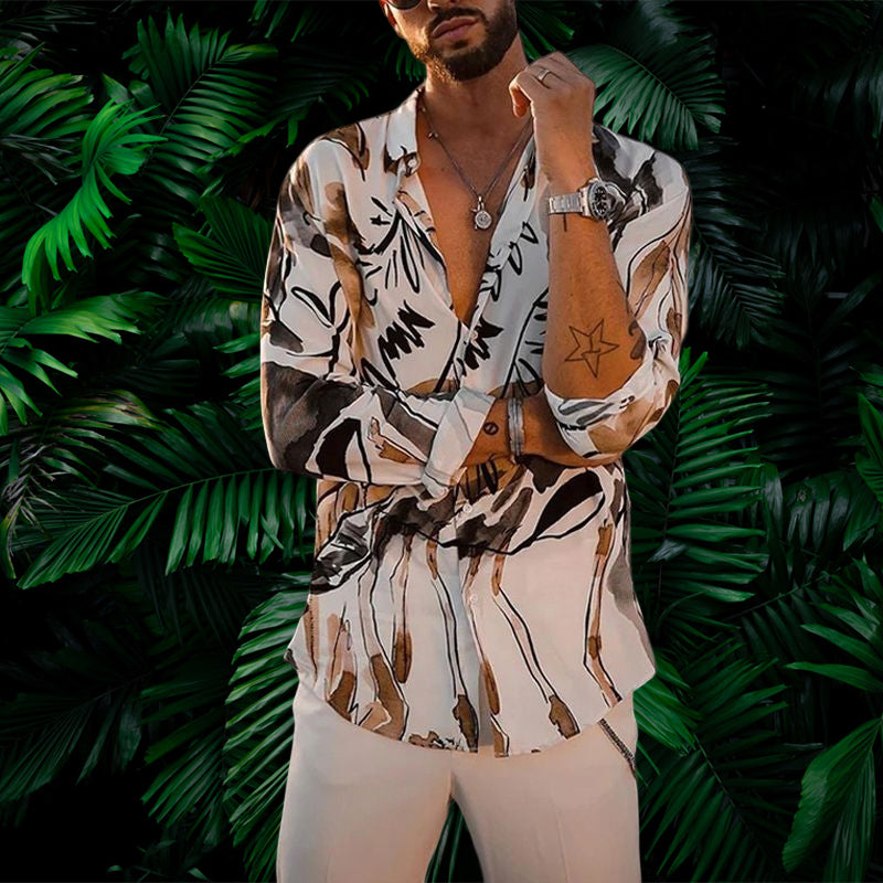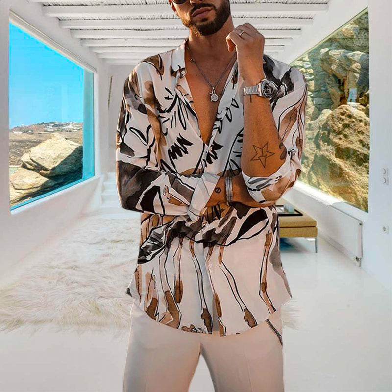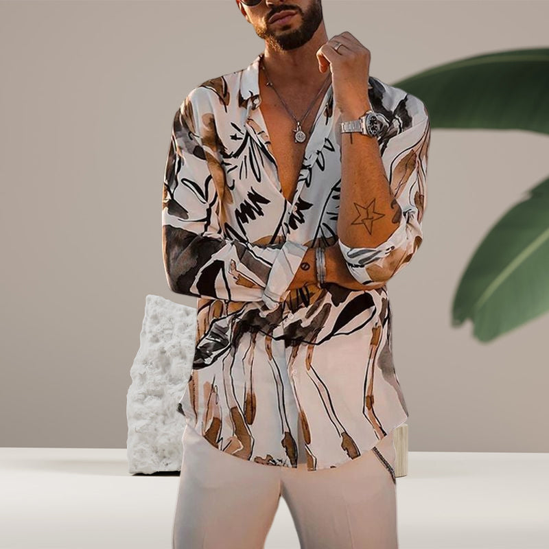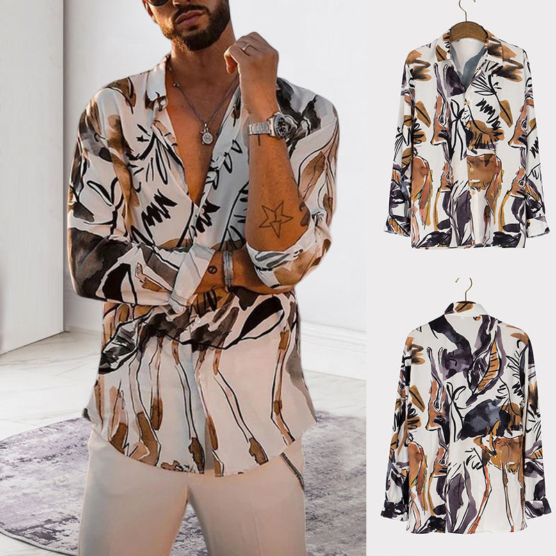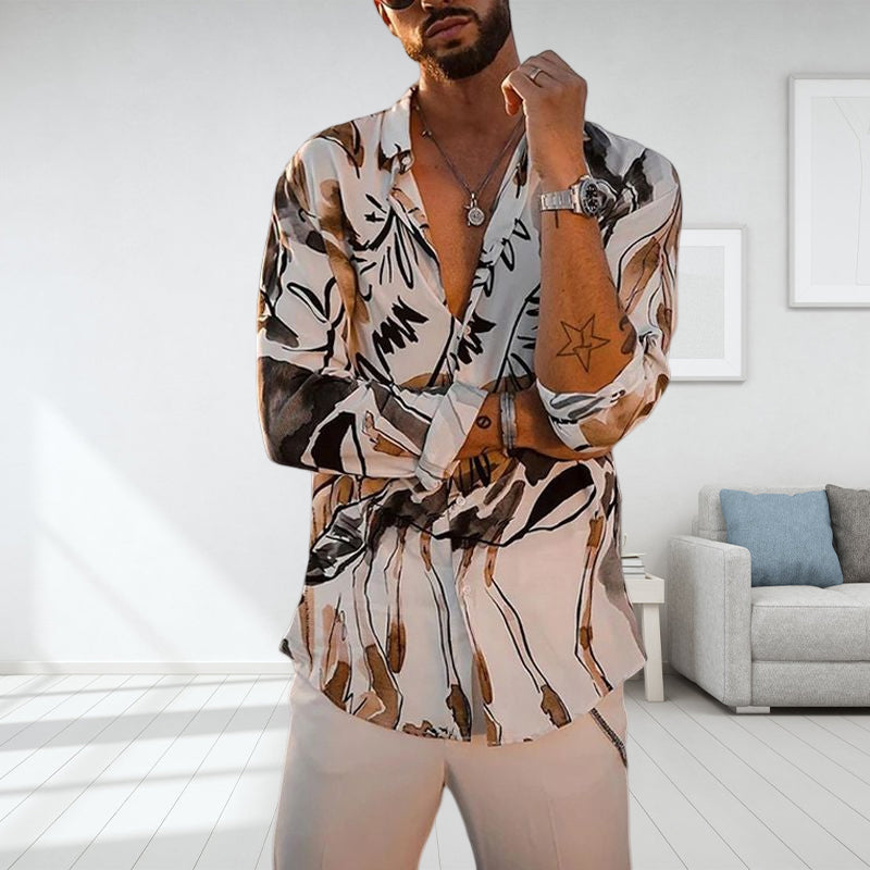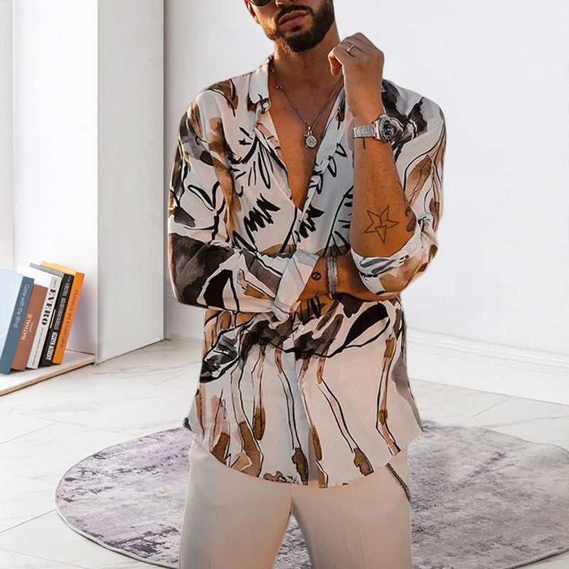 • 1* Büro Langarmes bedrucktes Hemd