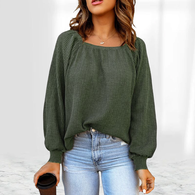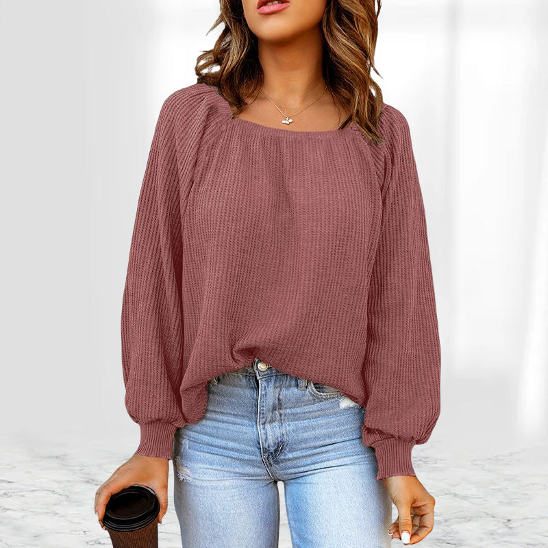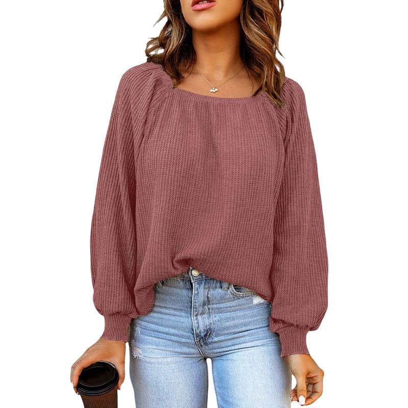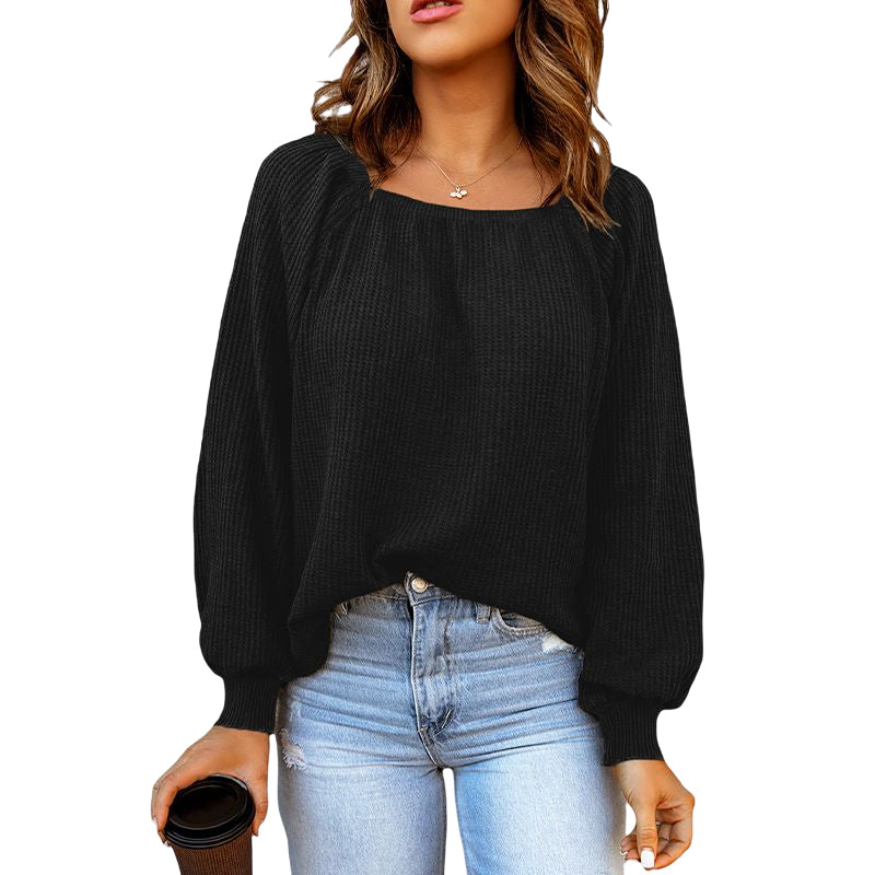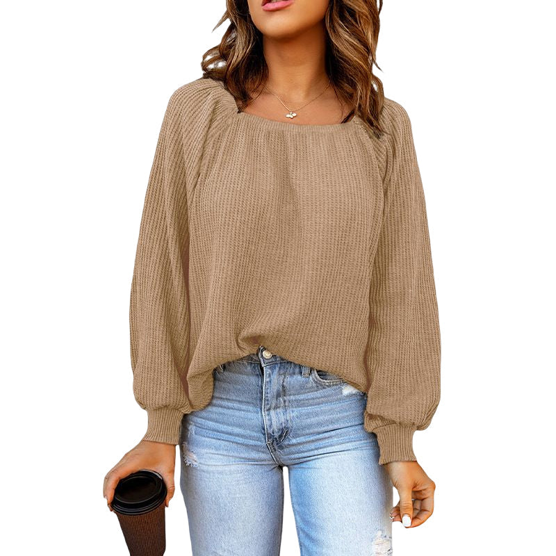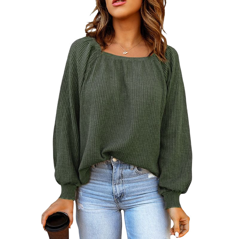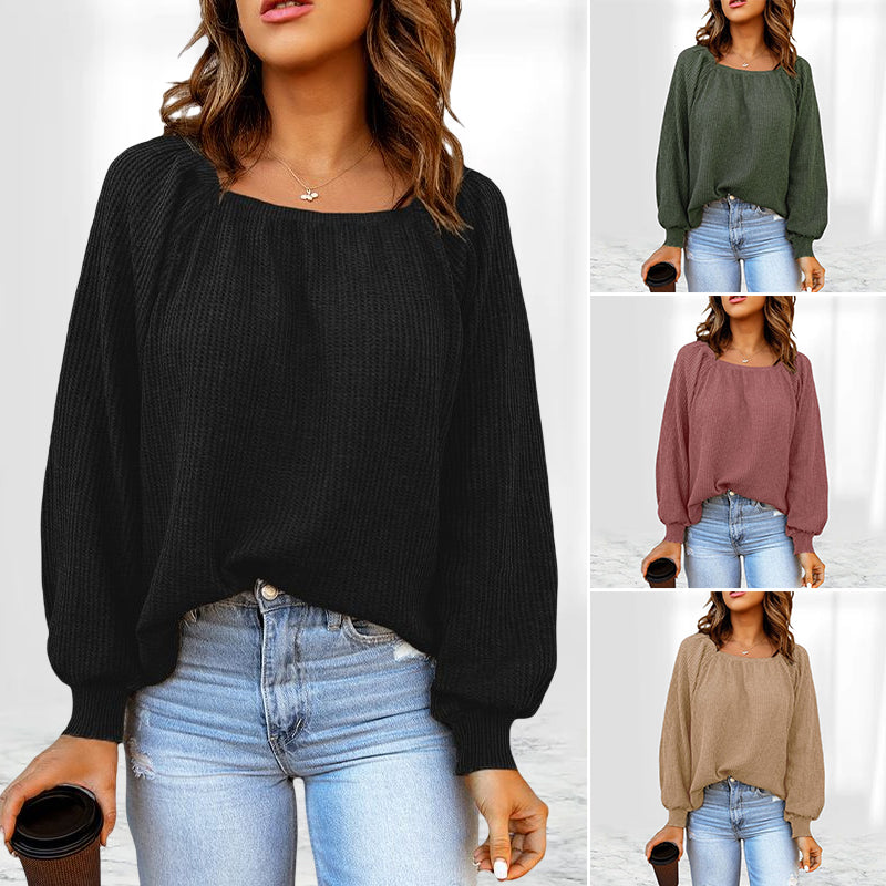 Design: Süßes Puffärmel-Oberteil mit quadratischem Ausschnitt, lang, Pullover, lässiges festes Sweatshirt, wird ein bequemes Alltagshemd in Ihrer Garderobe sein.