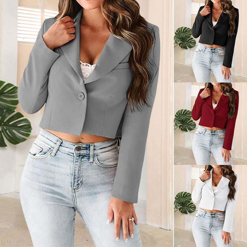Einfarbiger professioneller Anzug mit einem Knopf, Knopfverschluss, fallendes Revers, V-Ausschnitt, lange Ärmel, klassisch und vielseitig, die Formen und Details machen eine schlankere Jacke, das leichte Schulterpolsterdesign bietet einen stilvolleren und dezenteren Look.