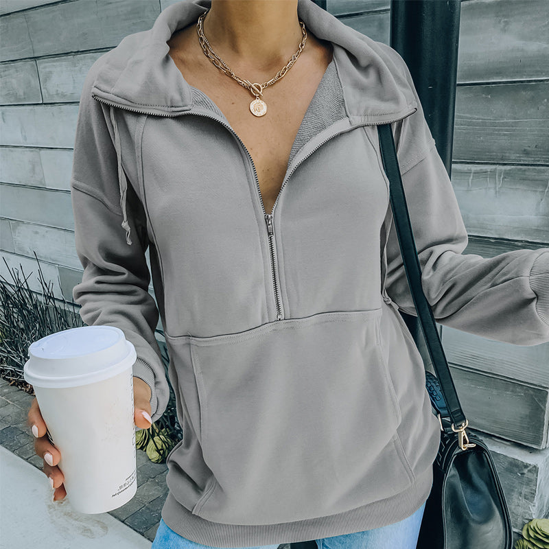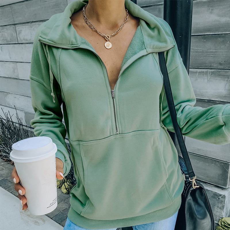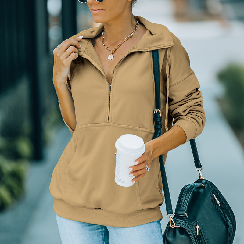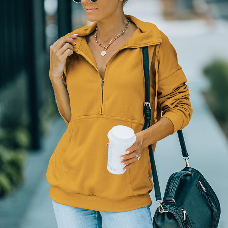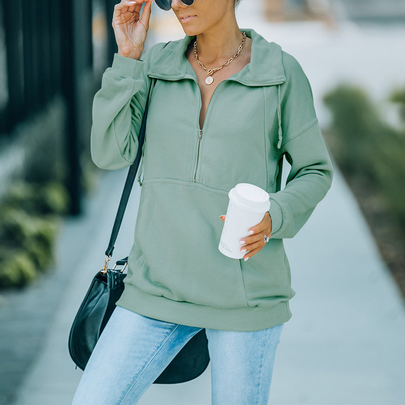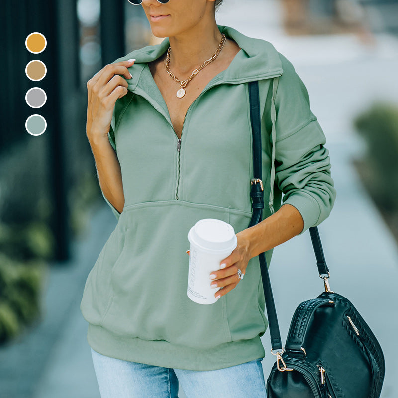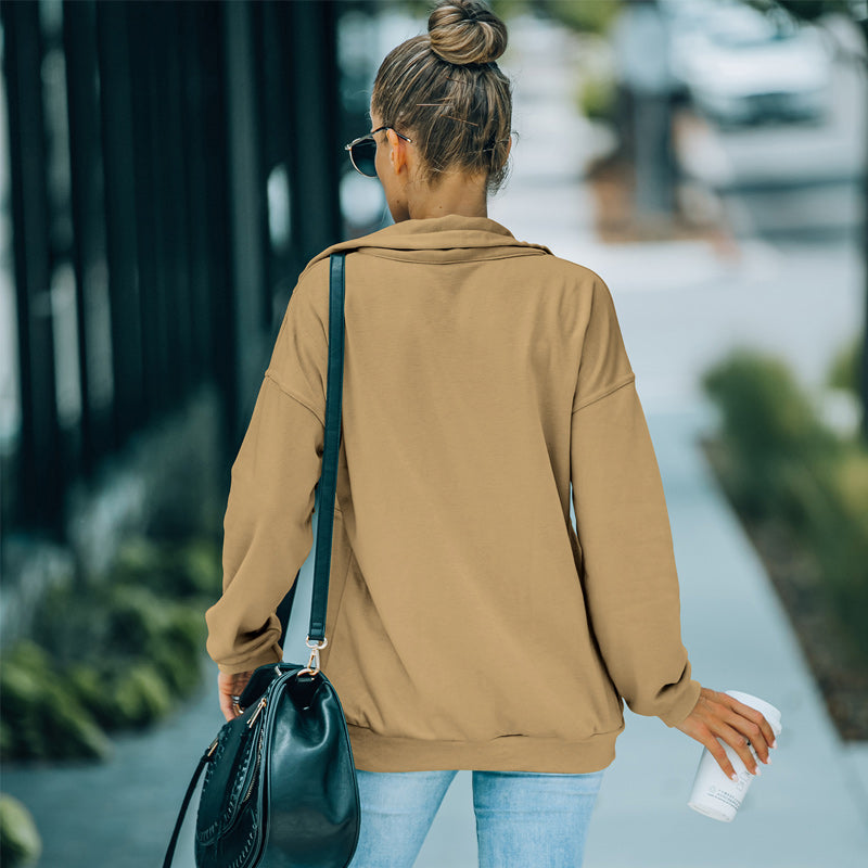 Paket: 1 * Einfarbiges Sweatshirt mit Revers und Reißverschluss