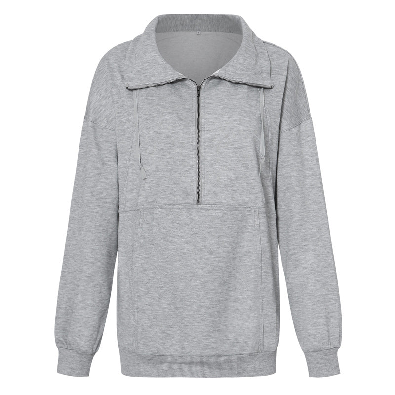 Merkmale: Sweatshirt mit halbem Reißverschluss, einfarbig, lässig, lange Ärmel. Der Kordelzug hat hervorragende Trageeigenschaften, lässt sich leicht an- und ausziehen, ist flexibler und passt besser.