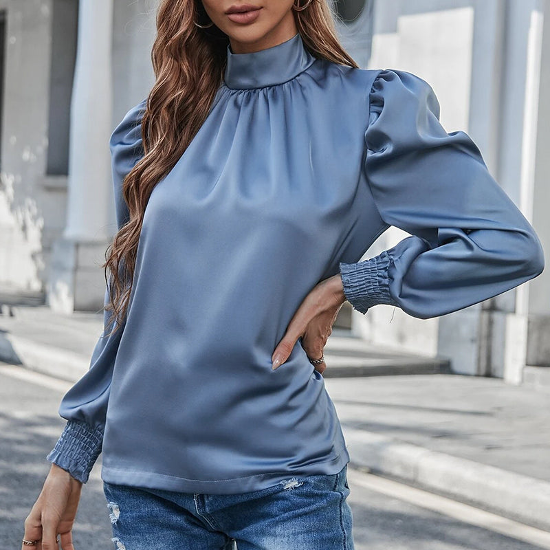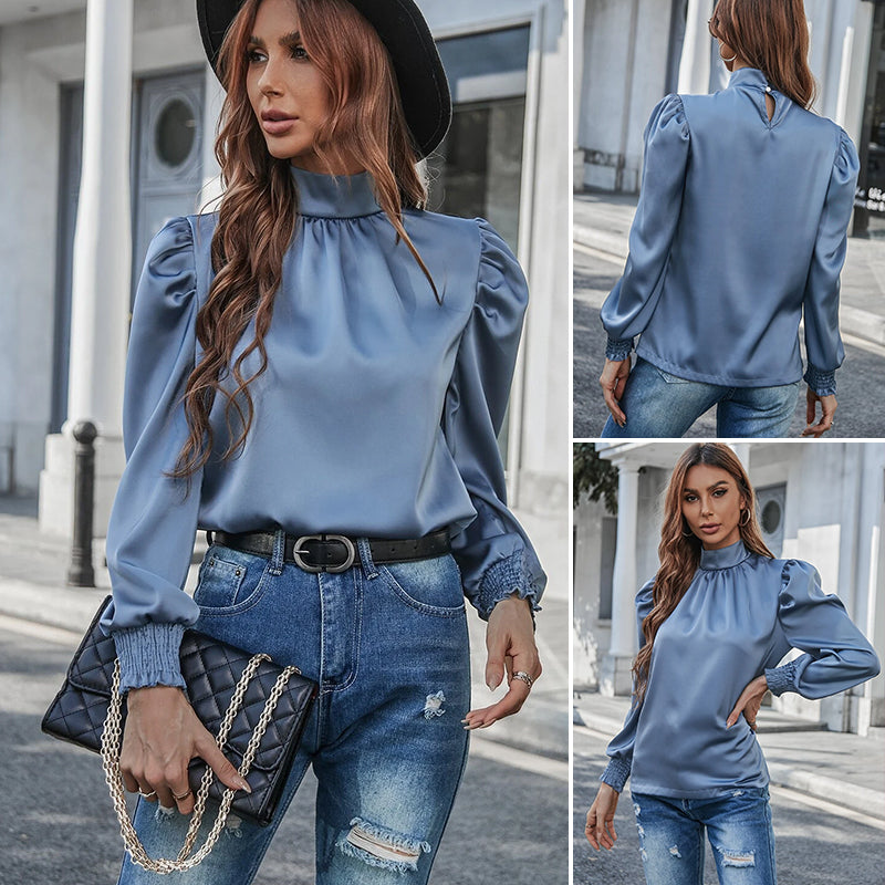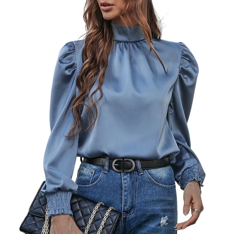 - 1×Elegante Langarmbluse mit Rollkragen und Puffärmeln