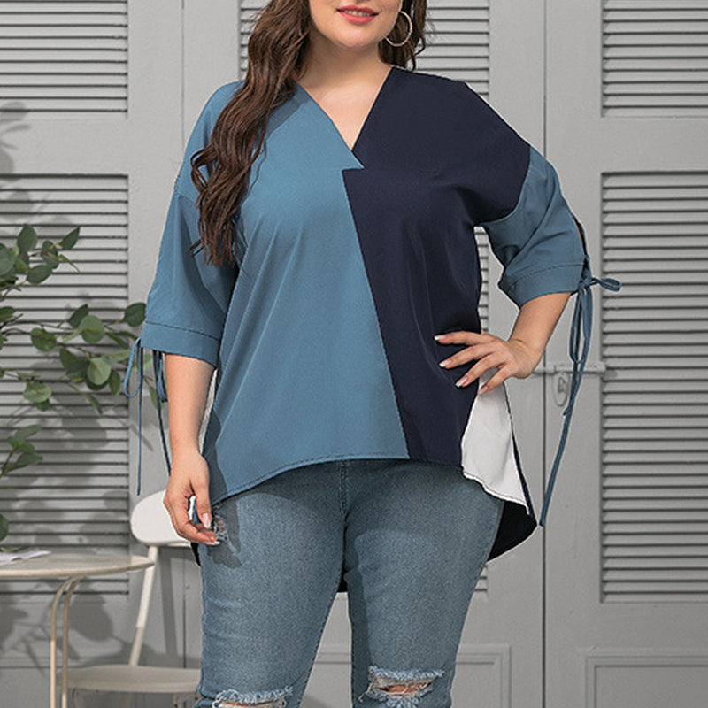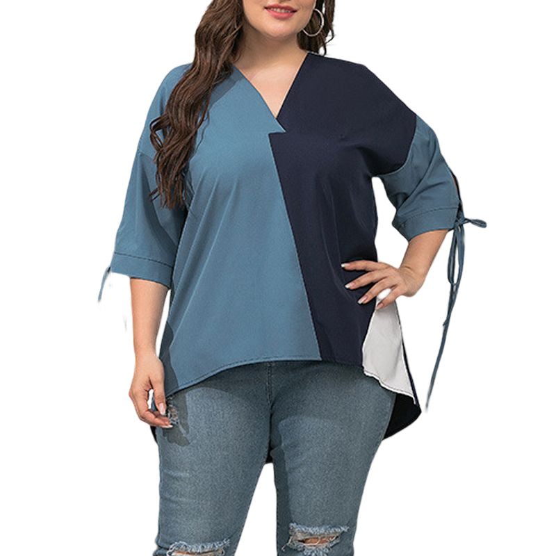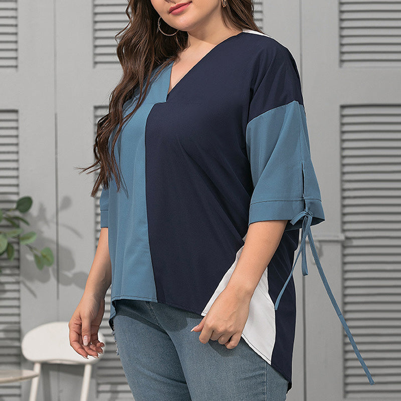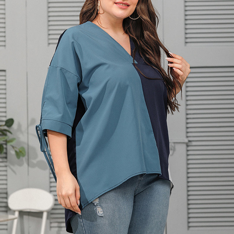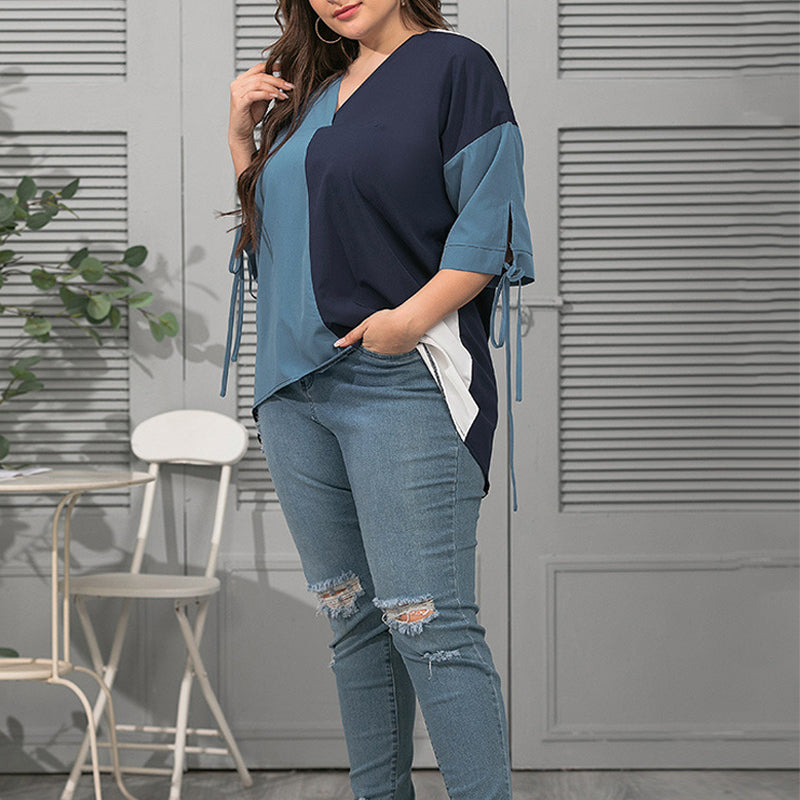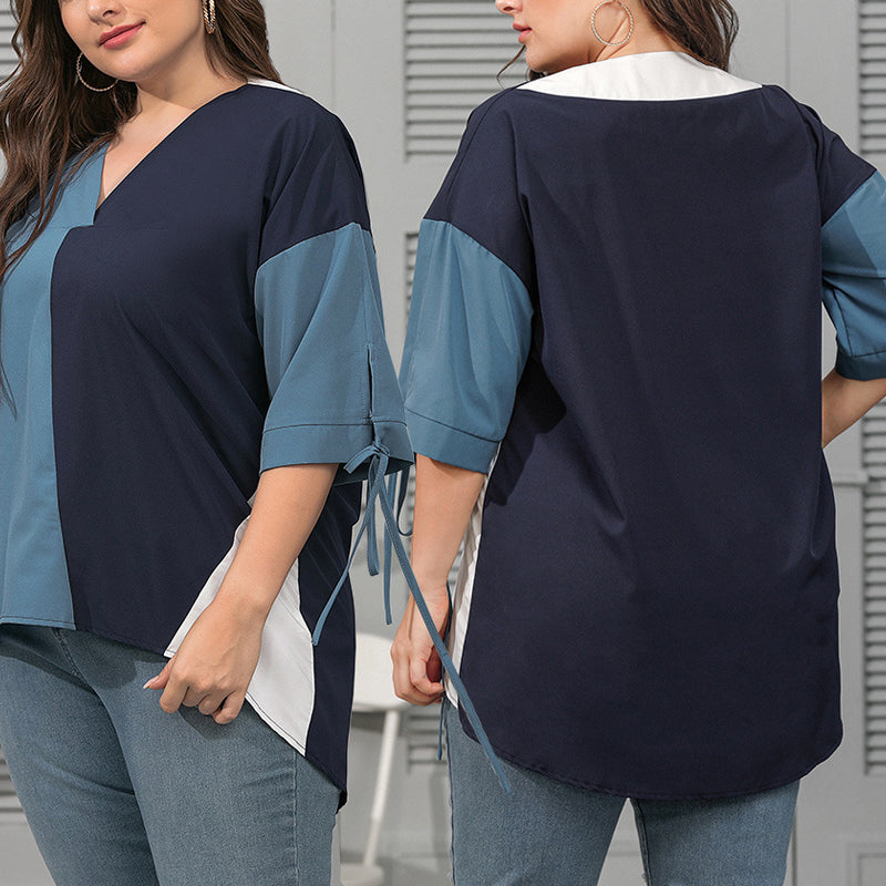 Stylischer Look: Das Kontrast-T-Shirt mit V-Ausschnitt für Frauen verleiht Glamour. Locker und bequem lässt es Sie anders aussehen.