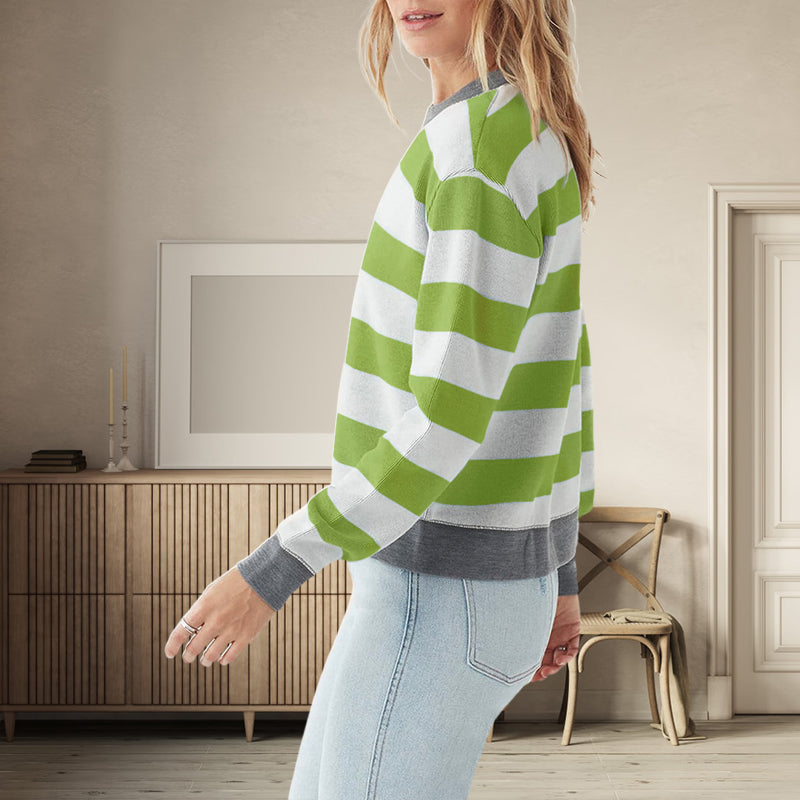 • 1 * Gestreiftes Langarm-Sweatshirt mit Rundhalsausschnitt