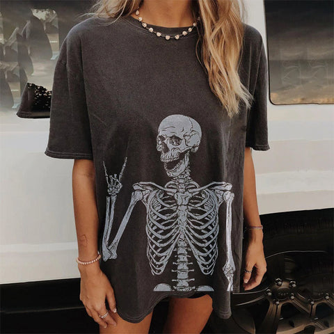 Kurzärmliges, stilvolles, lässiges T-Shirt mit Rundhalsausschnitt und Totenkopf-Print für Damen lässt Sie trendig und cool aussehen.