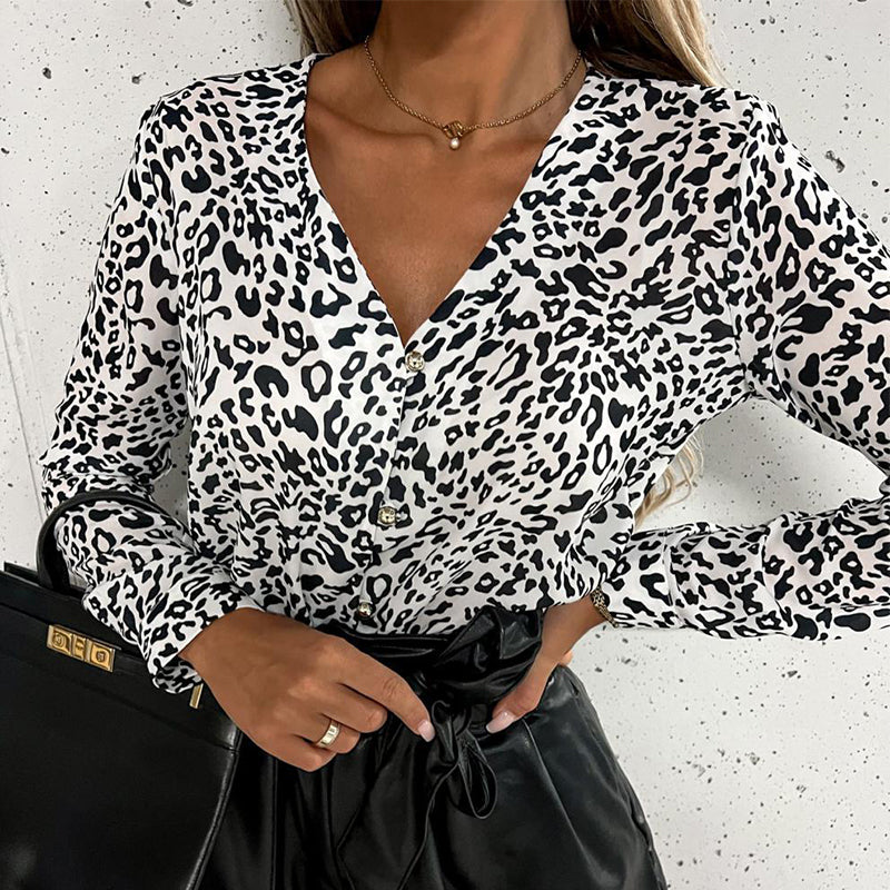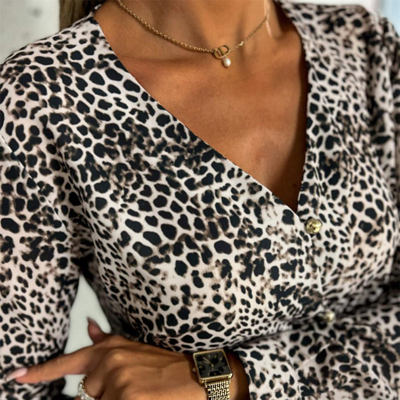 - 1* Hemd mit Leopardenmuster und V-Ausschnitt